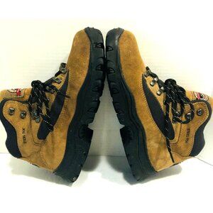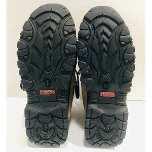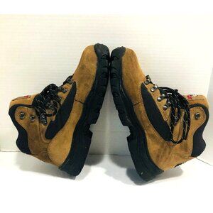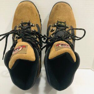 BC. Brahma Blaze. Good condition - minimal wear minor sock piling. Tan/black. Suede. Lace-up. Steel toe. 1.5 heel. 4.75 shaft. Ankle boots. Style 2522248. Size 9W. Shipped boxed.