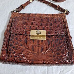 • Brahman Melbourne Purse Crossbody Croc Embossed Leather Turn Lock Small READ