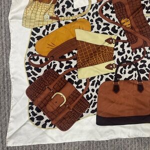Brahmin 100% Silk Square Scarf Brown & Cream Handbags Leopard Print