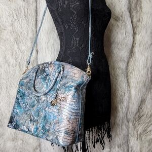 Genuine Italian Leather in a very Hard to find print with embossed gray and blue hues with a touch of silver marbled through each bag is a work of art and is unique