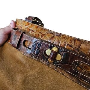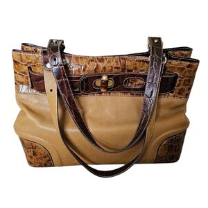 Brahmin 25th Anniversary Croc Embossed Satchel Shoulder Handbag Purse Brown Bag