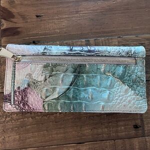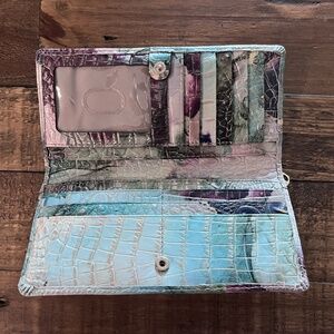 Transport your travel essentials effortlessly and stylishly in the Brahmin® Ady Wallet. This extremely lightweight and durable spinner features polycarbonate construction with sharp molded details, a zipper closure, a zip pocket, thirteen credit card slots, and an ID slot.