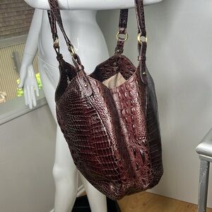 This is a beautiful Brahmin Anne Melbourne Chocolate Brown Croc Embossed Hobo Tote Shoulder Bag.