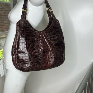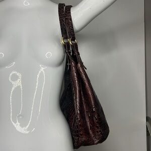Brahmin Anne Melbourne Chocolate Brown Croc Embossed Hobo Tote Shoulder Bag