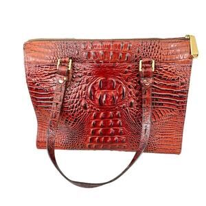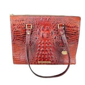 Brahmin Anywhere Tote Pecan Melbourne Croc Embossed Leather Shoulder Bag