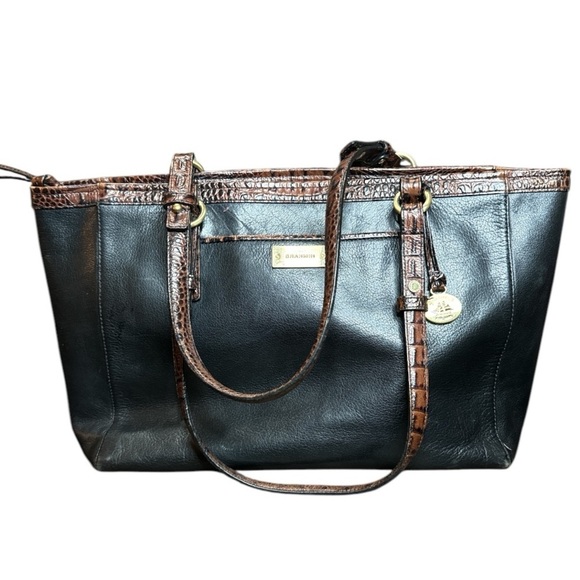 Brahmin Arno Tuscan Black and Brown Leather Satchel Shoulder Bag Purse - Vintage