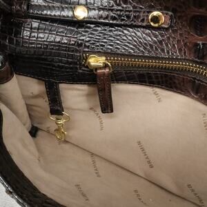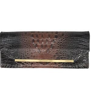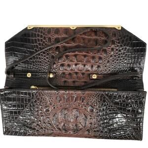Brahmin Bag Womens Brown Leather Alligator Embossed Clutch Handbag Strap Pecan