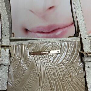Brahmin Beige Embossed Tote Bag medium size with tassle