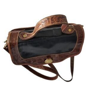 Brahmin Black Brown Leather Crocodile Embossed Top Handle Satchel Bag - Vintage