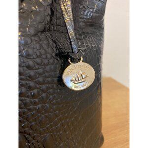 Brahmin Black Croc-Embossed Leather Satchel 14"x5"x11.5" With Top Handle