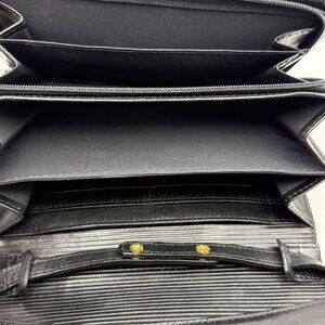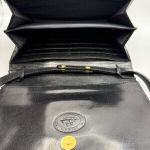 Minor scuffs on leather, overall in excellent condition. Width = 8.5 inches, Height = 6 inches, Depth = 2 inches.