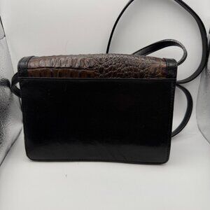 Brahmin Black Leather Crocodile Embossed Crossbody Bag Multiple Compartments