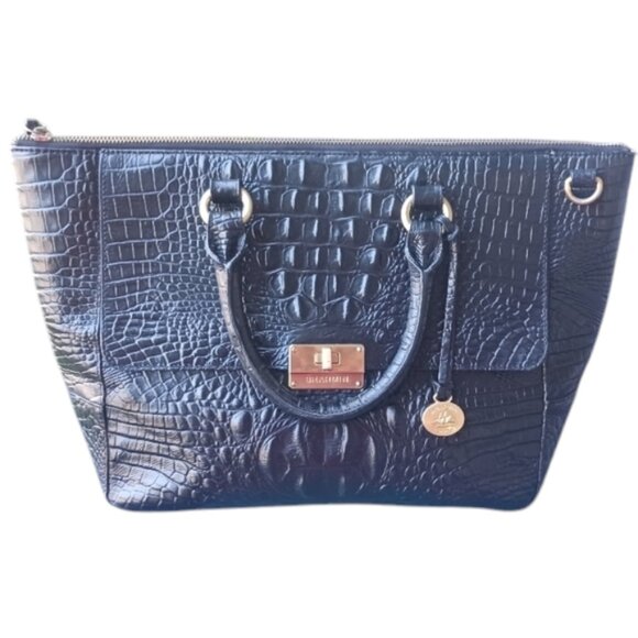 Brahmin Black Melbourne Croc Embossed satchel EUC