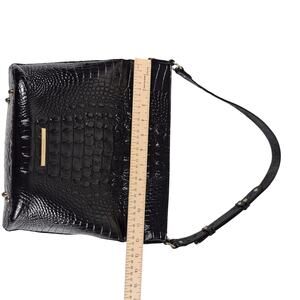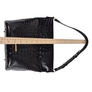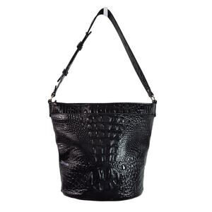 Brahmin Black Patent Leather Croc Embossed Bucket Bag Shoulder Bag Purse