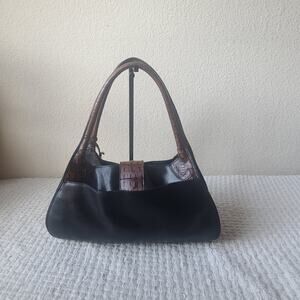 Brahmin Black and Brown Croc Embossed Leather Handbag
