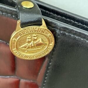 Brahmin Black and Brown Croc Small Crossbody Bag