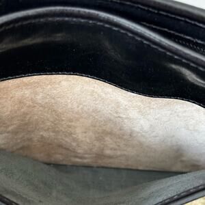 DETAILS: Brown croc and black front. The back is completely black with an envelope pocket. Long drop strap - see measurements in photos: