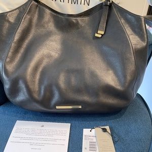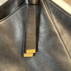 Well cared-for black Charleston Leather Thelma bag by Brahmin, in very good shape. Comes with original storage bag, registration card, sales tag, and care instructions. Beautiful soft leather has no deep scratches, just light marks from use. The pictures are a very good representation of what you will see. There are scratches on the connector rings as shown, where the handles connect to the bag. There are scratches on each handles metal connector brackets. Remarkably, the bottom is not scuffed or scratched, because I try hard not to put my backs on the floor, ever. There are some small ink spots and one mark inside as shown. No tears or rips.