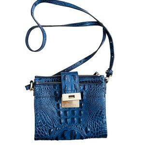Brahmin Blue Mojito Melbourne Croc-Embossed Leather Travel Crossbody Bag NEW