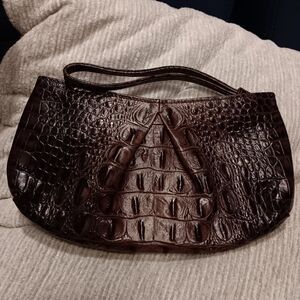Elevate your style with this elegant brown crocodile embossed clutch. Perfect for any occasion, this bag adds a touch of sophistication to your ensemble.