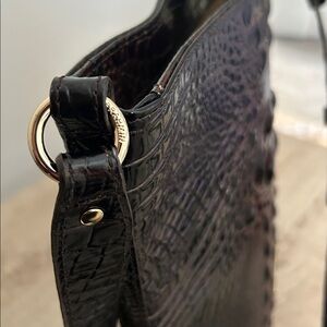 Elegant Brahmin handbag with croc texture. Features a spacious interior.