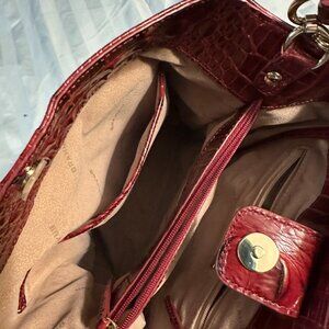 Brahman bucket bag. This features a detachable 1" wide shoulder strap and a rolled top handle. The spacious interior has a Center zip divider pocket. Single kangaroo and pen pocket. Zipped jewelry pocket. Bottom feet. Dimensions are 10.25 H, 9W, 5.5 D. Brand new. Plastic covering still on hardware.