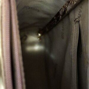 Beautiful Autumn flowers and leaves on a genuine leather bag is the perfect "goes with everything" handbag for the Fall season. This bucket bag has a bridge magnetic snap closure, an adjustable shoulder strap, center zip divider pocket, interior zip pocket with key clip, a single kangaroo, pen pocket and a jewelry pocket. EUC, price tag is inside along with the registration and dust bag.