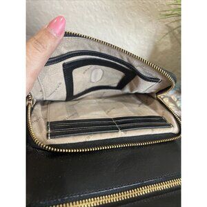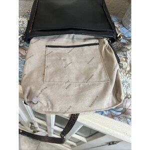 Great versatile Brahmin brown and black handbag! This little bag can be very fun and very useful for going out to dance, bars or any other crowded public place or traveling where you only want to take few little things like, money, ID, credit cards and few lady items. It has a front zipper area for credit cards and ids. Ready for a new home.