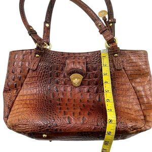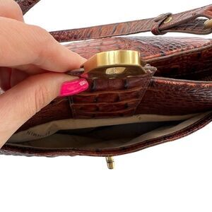 Crafted for functionality and style, this Brahmin shoulder bag showcases a crocodile-embossed leather design complemented by gold-tone hardware and a secure clasp closure.