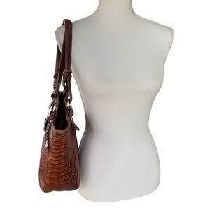 Crafted for functionality and style, this Brahmin shoulder bag showcases a crocodile-embossed leather design complemented by gold-tone hardware and a secure clasp closure.