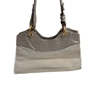 Brahmin Croc Embossed Leather & Canvas Shoulder Bag