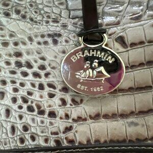 Brahmin Croc-Embossed Tote in Cream and Brown