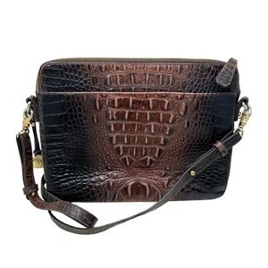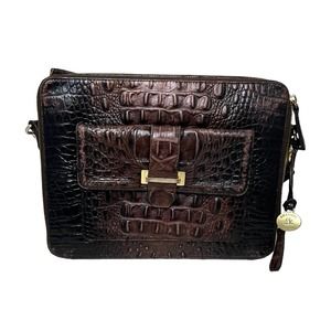 Brahmin Crocodile Embossed Leather Crossbody Padded Tablet Compartment