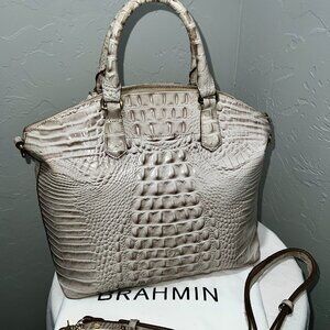 Brahmin Large Duxbury satchel in Pristine Melbourne, suede lining. Comes with shoulder strap and dust bag. 13" tall X 13" wide X 5.5" deep. Non-smoking home.