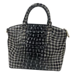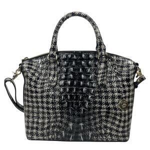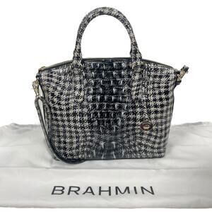 Brahmin Duxbury Satchel Bag Houndstooth Ombre Melborne Black White