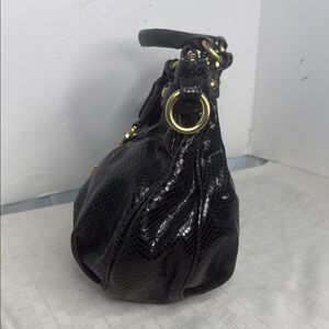 The Brahmin Elisa Black Python Hobo Satchel is a stylish and versatile handbag for women. It features a unique snake pattern exterior in Black leather with gold accents and hardware.