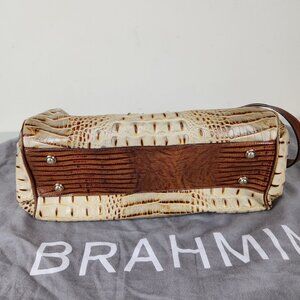 Brahmin Elisa Hobo Shoulder Bag Brown Cream Croc Embossed Leather Gold Hardware