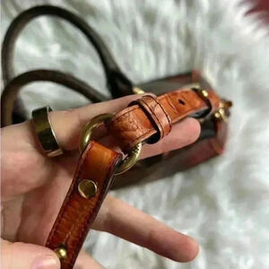 This luxury Brahmin handbag features the brand’s iconic crocodile-embossed leather in rich, earthy tones, perfect for anyone who appreciates high-end designer handbags. Complete with its original Brahmin dustbag, this satchel ensures both style and protection.