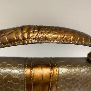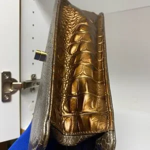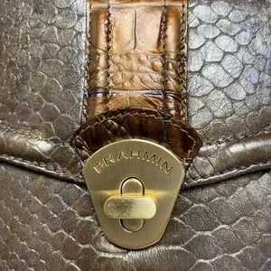 Brahmin Genie. Stunning pewter lizard embossed base with mineral Melbourne trim and strap. Excellent condition. Dust cover included. Measures 10” x 5” x 4”