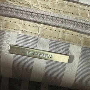 Brahmin Hudson Twill Tri texture large satchel/convertible bag in a dark beige/ almond croc leather.