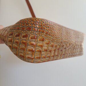 Brahmin Isabelle Croc Embossed Leather Cross Body Shoulder Bag Brown