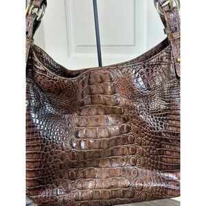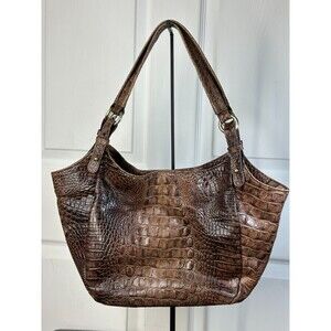 Brahmin Jacqueline Satchel Pecan Croc Embossed Leather Handbag Suede Lined