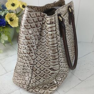 Pre-owned gently used Brahmin Joan Tote Bag in Pearl Dogwood Metallic Leather