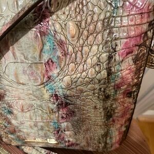 Chic Brahmin handbag with a croc-embossed design. Features pastel tones for a stylish look. Good condition.