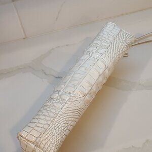Brahmin Kayla Coconut Melbourne Clutch EUC. She is a big clutch/wristlet. You can hold your phone and wallet for sure. Coconut Melbourne is a great creamy color.