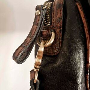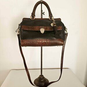Brahmin Large Crossbody Satchel Black and Brown Faux Crocodile