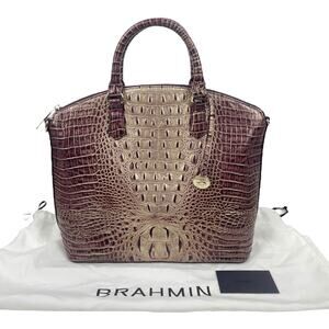 Brahmin Large Duxbury Satchel Bag Port Ombre Melbourne Purple Leather Croc