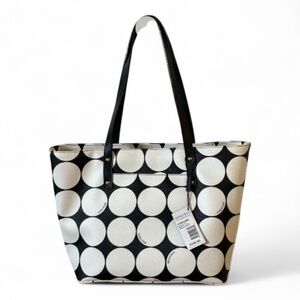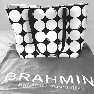 Brahmin Leather Tote Bag - Black and White, Polka Dots