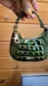 Brand new and authentic. A gorgeous green color. 100% leather. Zipper top. Key chain/lobster clasp attachment. Goldtone.