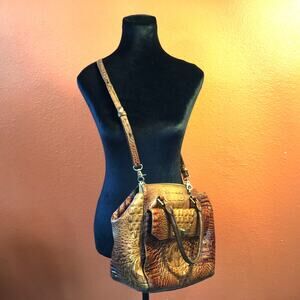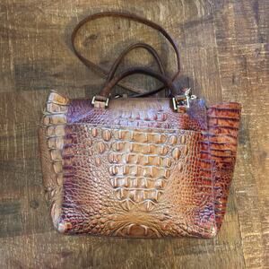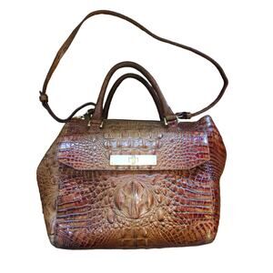 Brahmin Malia Pecan Melbourne Satchel Purse Hand Bag Croc-Embossed Leather
